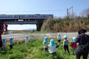 後ろには電車が通ります![]()
